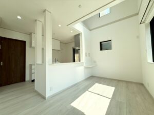 「スカイテラス池田・鼓滝Ⅴ」完成しました!屋上スカイテラス&屋根裏大収納庫はもちろん、リビングには吹き抜け、採光窓が設置されておりとても明るく心地のよい空間になっております。