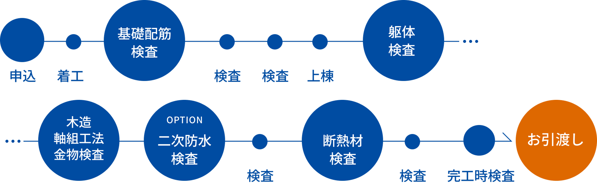 OPTION壁や天井などに入れた断熱材が隙間なく、設計図どおりに施工されているかを確認する検査です。